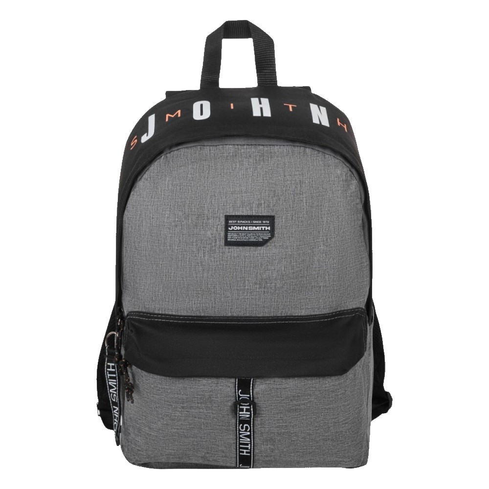 Lleva impreso en la parte superior, el logo de John Smith y en el bolsillo exterior una etiqueta decorativa.