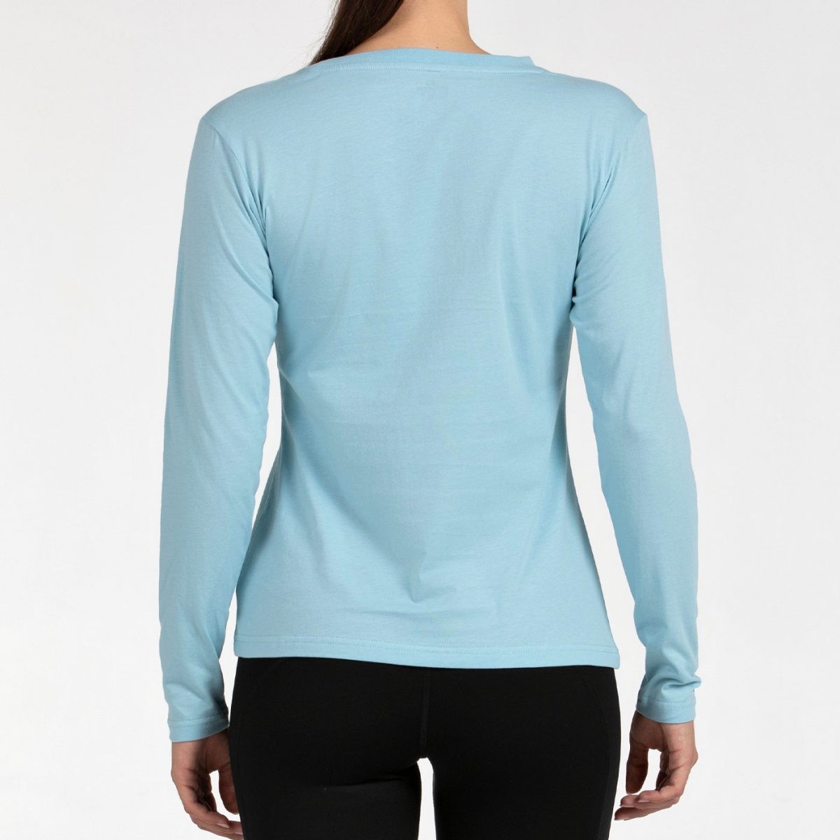 Eleva tus looks del día a día con esta camiseta de manga larga, confeccionada en suave algodón para un confort total. Su diseño clásico con cuello a la caja se combina con un gráfico decorativo en el pecho que añade personalidad y un toque moderno a cualquier outfit.