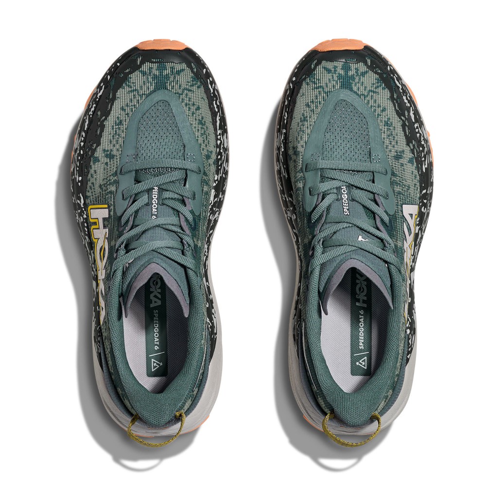 Una pisada con capacidad de respuesta y adherencia para terrenos técnicos. Solo hay unas GOAT en el trail. No hay más que hablar. Con su combinación de la amortiguación auténtica y probada de HOKA, tracción agresiva y materiales ultraligeros, las Speedgoat 6 han nacido para dominar el trail. Son un caballo de batalla en terrenos técnicos; esta reciente reedición ha mejorado con un empeine de tejido textil, un chasis interno que se ciñe a los pies, una lengüeta con doble refuerzo más mullida y un nuevo diseño de la orientación de los tacos inspirado en las pezuñas de las cabras, ¿qué más se puede pedir?
